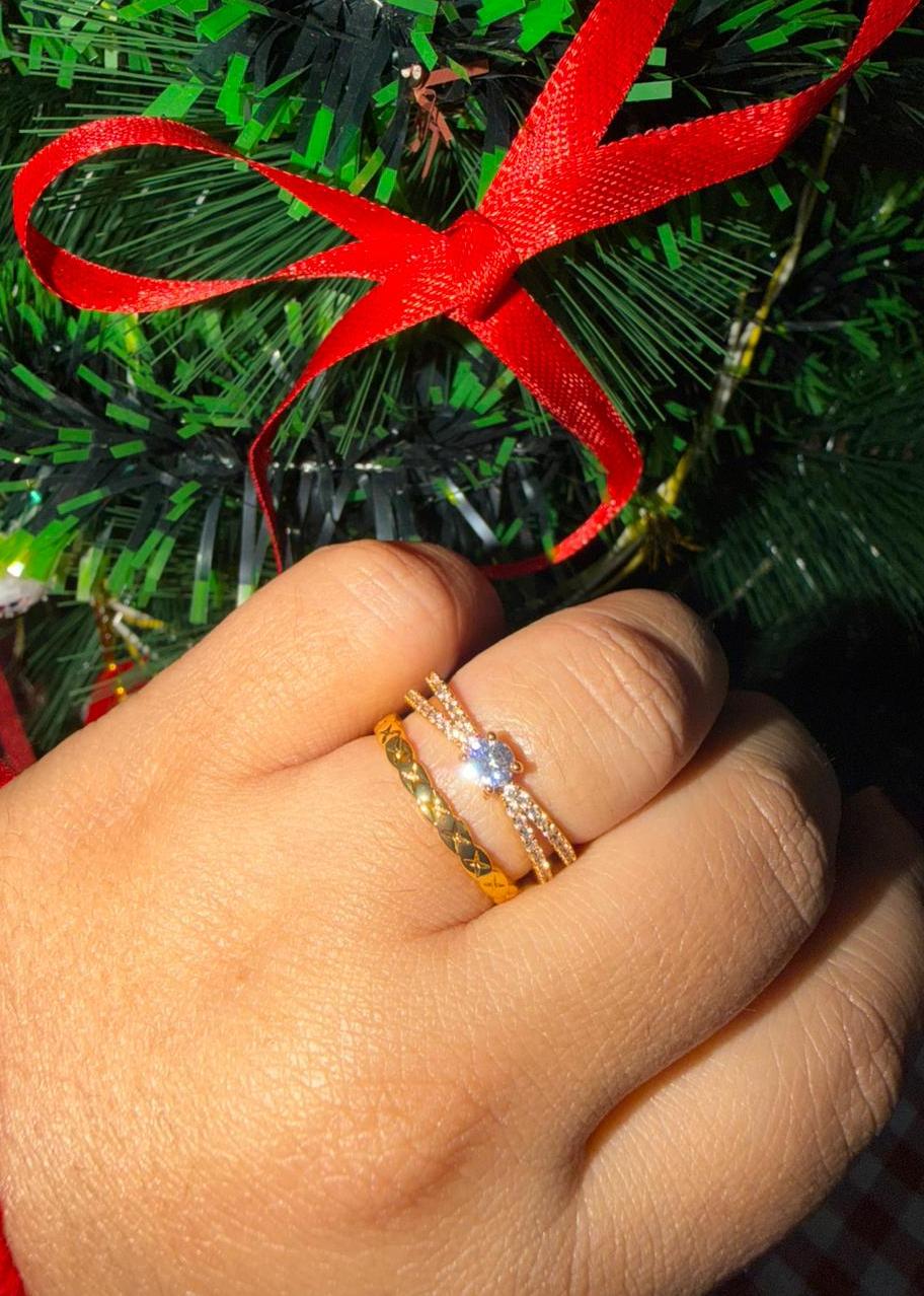 Linea Solitaire Stack Anti Tarnish Ring